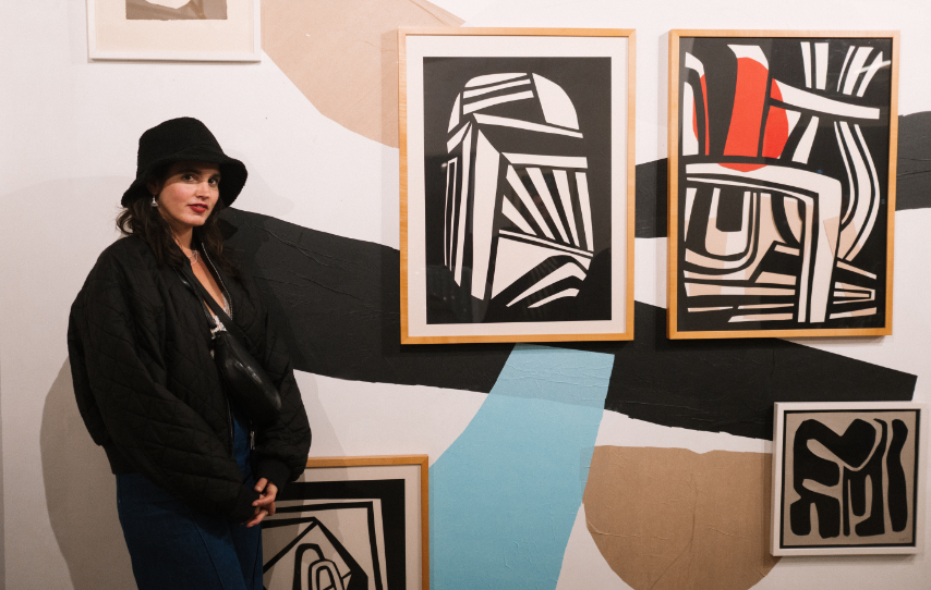Die in Argentinien geborene und in Essen lebende Künstlerin bewegt sich zwischen großformatigen Murals, filigranen Scherenschnitten und immersiven Bühnenbildern.